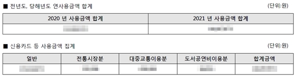 신용카드 등 사용 금액(일반, 공제율이 높은 항목)을 확인할 수 있다.