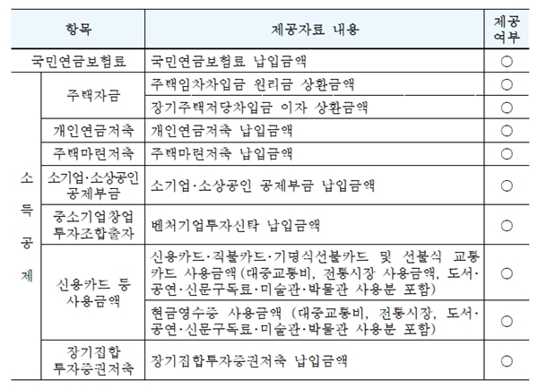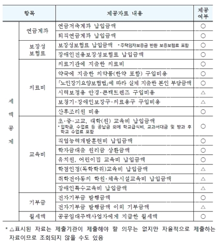 연말정산 간소화 서비스에서 조회 가능한 항목 2.(출처=국세청 보도자료)