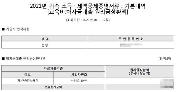 학자금대출 원리금 상환액은 15%의 세액공제가 가능하다.