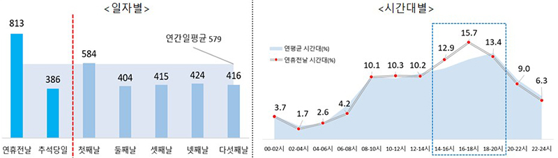 연휴 전날, 평소보다 1.4배 ↑…가장 높은 시간대 오후 2시~8시